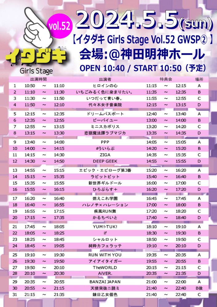 「イタダキ girls stage Vol.52 @神田明神ホール GWSP②」夜帯出演