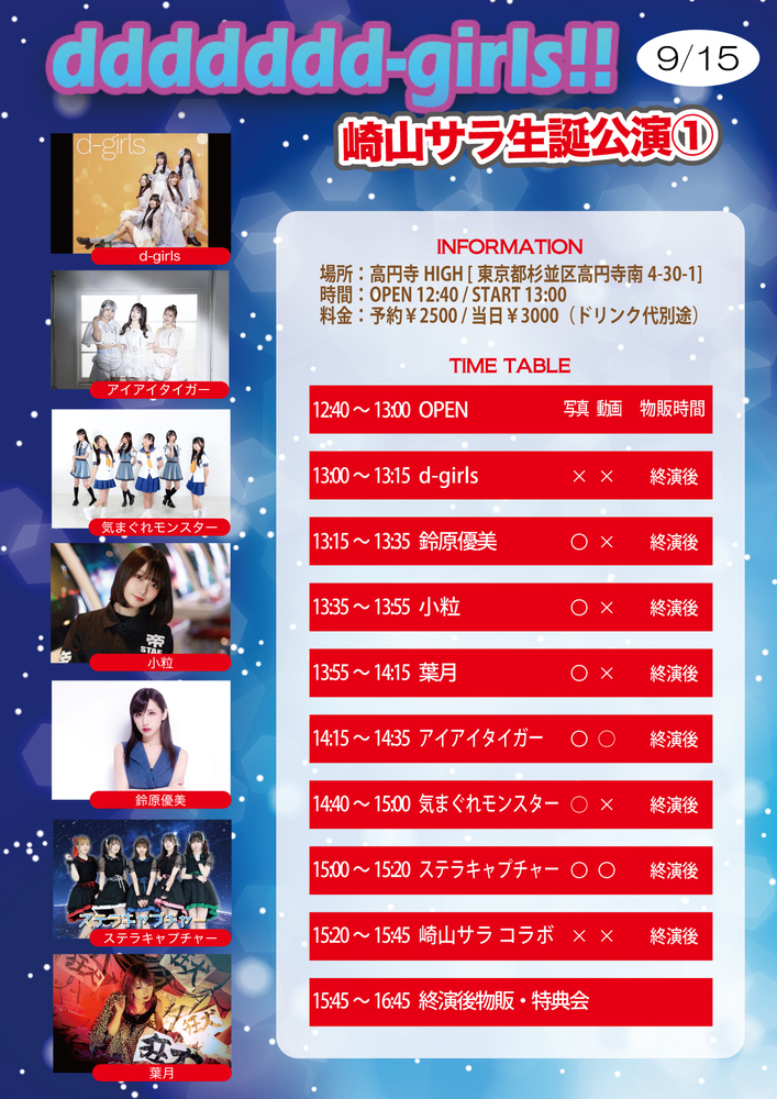 🎤ddddddd-girls!!~﨑山サラ生誕公演①~(高円寺/14:15出演)