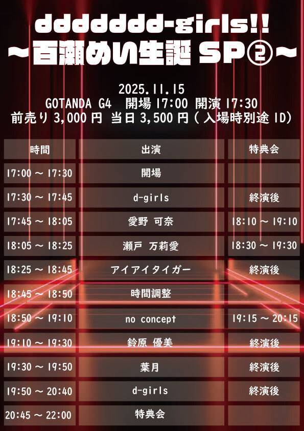 【18:25〜/五反田G4】ddddddd-girls!!~百瀬めい生誕公演SP②~