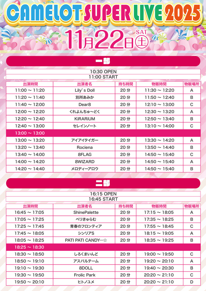 時 間:開場:10:30 開演:11:00(予定)※変更の可能性ございます