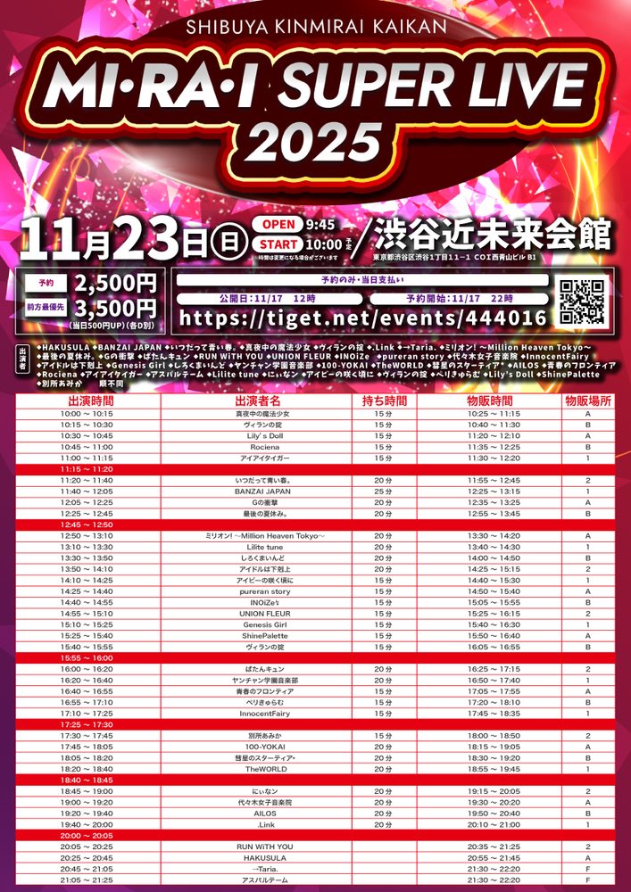 「MI・RA・I SUPER LIVE 2025」(11時出演/渋谷近未来)